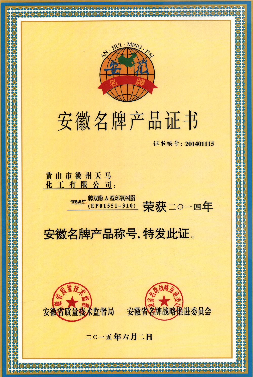 榮獲2014年安徽省名牌產(chǎn)品