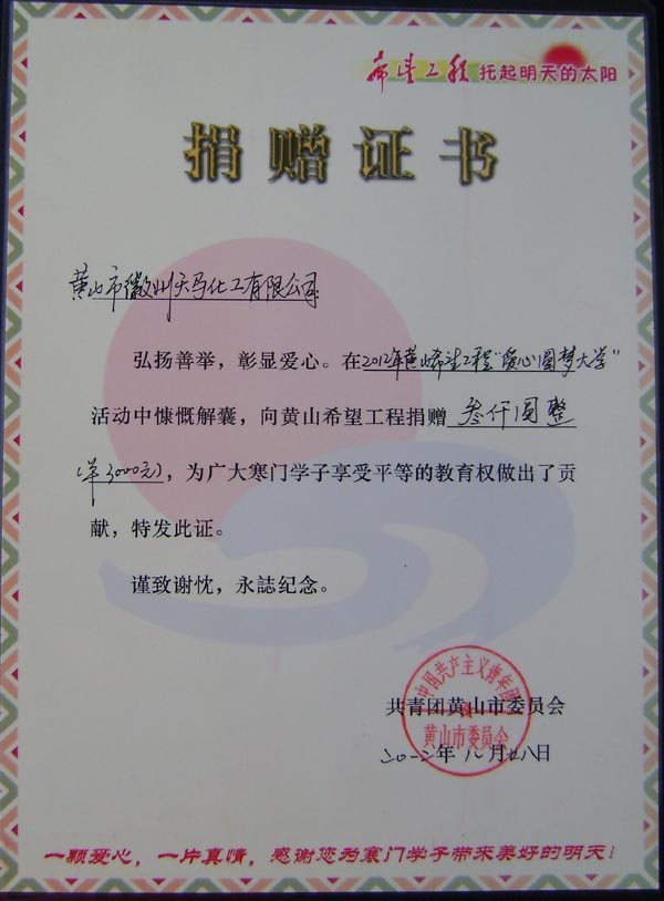 希望工程捐贈證書2